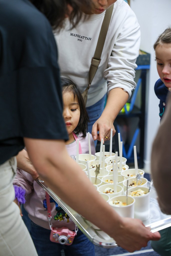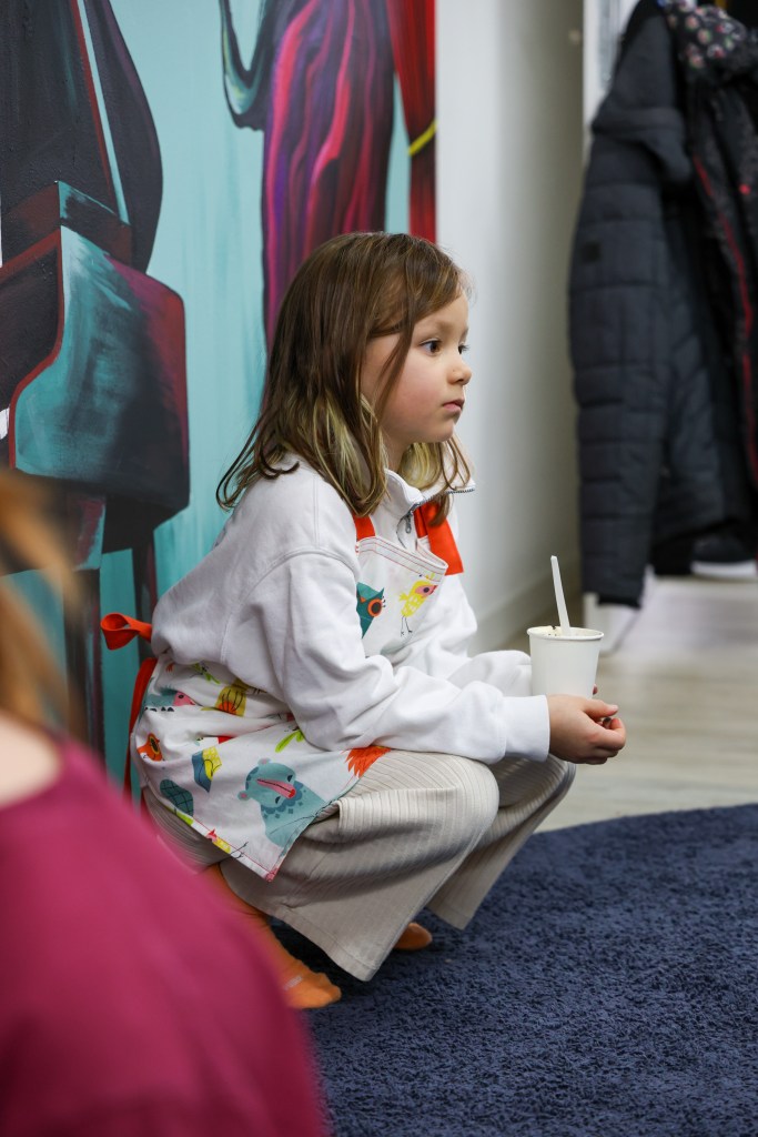 Anlässlich unseres Jubiläums feierten wir mit einer besonderen Inszenierung: Unter der Anleitung unserer Künstlerin Julia Udoratina haben die Kinder vom Atelier Wunderpinsel das Puppenspiel „Das magische Königreich“ aufgeführt, musikalisch begleitet von Kristina Tokareva. Beim anschliessenden Apéro erfüllten die Klänge der Band FUMU den Raum, während Maëlle Torné die Gäste mit ihrer eindrucksvollen Videoinstallation in ihren Bann zog.